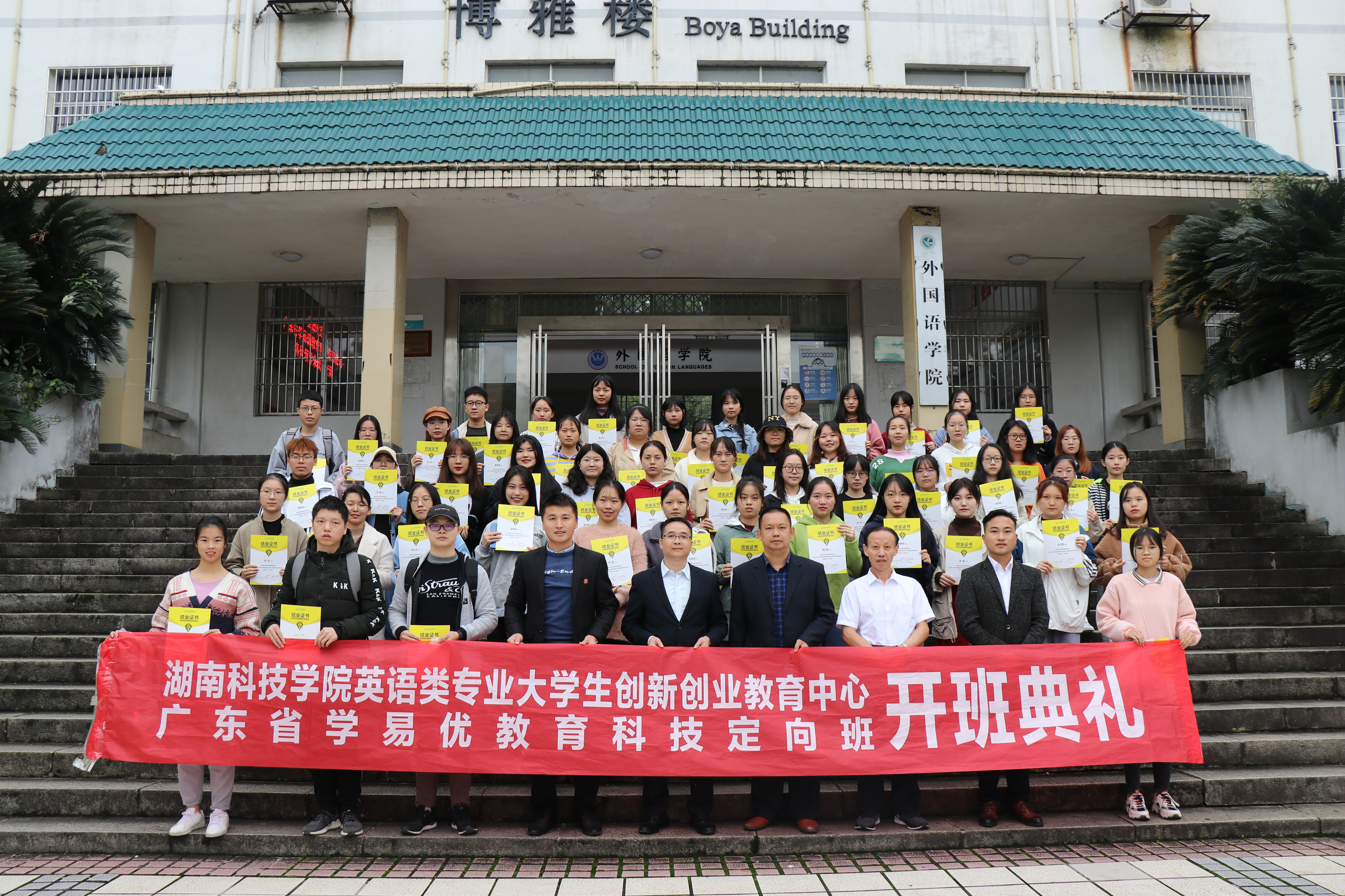 本网讯(通讯员 黄子幸 摄影 沈叶恒)10月17日上午,vwin德赢ac米兰官方网英语类专业大学生创新创业教育中心广东省学易优教育科技定向班开班典礼在学校创新创业大楼317“聚师堂”校企合作工作室举行。vwin德赢ac米兰官方网就业创业指导中心直属党支部书记陈旭日,外国语学院党总支部书记雷树彬,广东省学易优教育集团人力资源总监刘付贤、新瞭望大学实训学院负责人熊国林、资深英语培训教师向启成、校招主管尹景云参加典礼,开班典礼由外国语学院学工办副主刘罗主持。