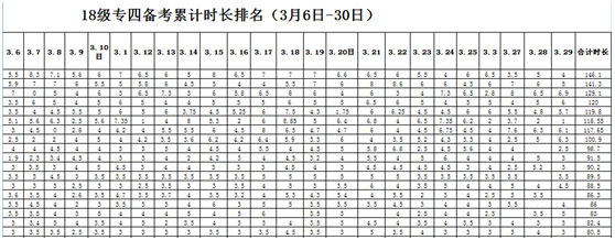 每天晚上12点前辅导员王素芳会把当天打卡总人数统计出来,并贴心的加上一句激励学生学习的话语;每周一公布班级打卡率排名和个人累计学习时长排名。截止目前,2018级打卡率为99%,打卡人次已经超过4000人次。