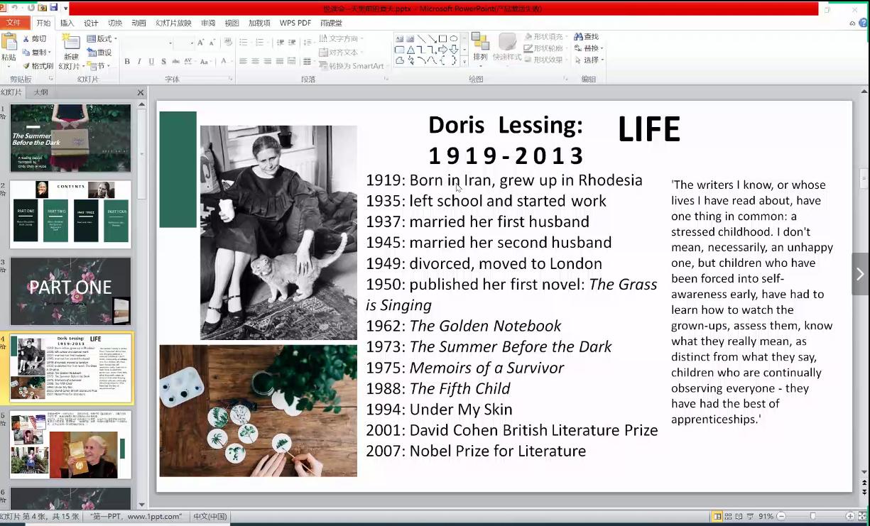 首先,由主持人简单地介绍该书目以及书目作者。活动伊始,陈碧园老师抛出了“中年妇女在你心中的形象是什么?”以及“以后想成为什么样的人?”等问题让同学们思考。随后,陈碧园老师对作者的生平和作品进行了详细的介绍,并且对该书的剧情进行了简单的讲解。接着,陈碧园老师为大家朗读了《The Summer Before the Dark》第一章的选段,并向同学们提问:“你是从什么时候开始进入人生的下一个阶段的呢?”,引发了大家的思考和讨论。