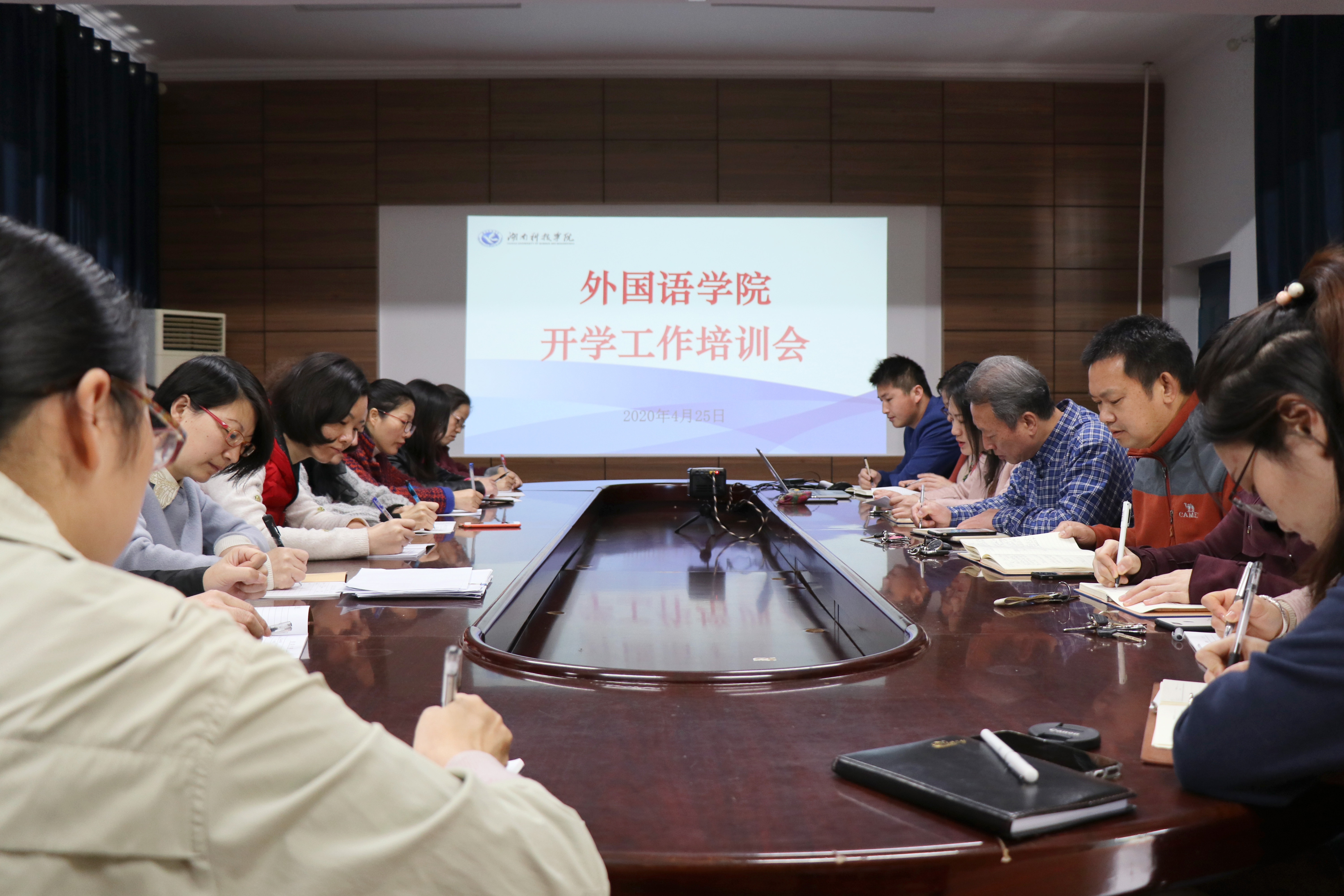 本网讯 4月26日上午,外国语学院举行2020春季学期开学工作培训会,全力确保学生安全返校复学工作。会议由党总支书记雷树彬主持,全体院领导、班主任、辅导员参加会议。