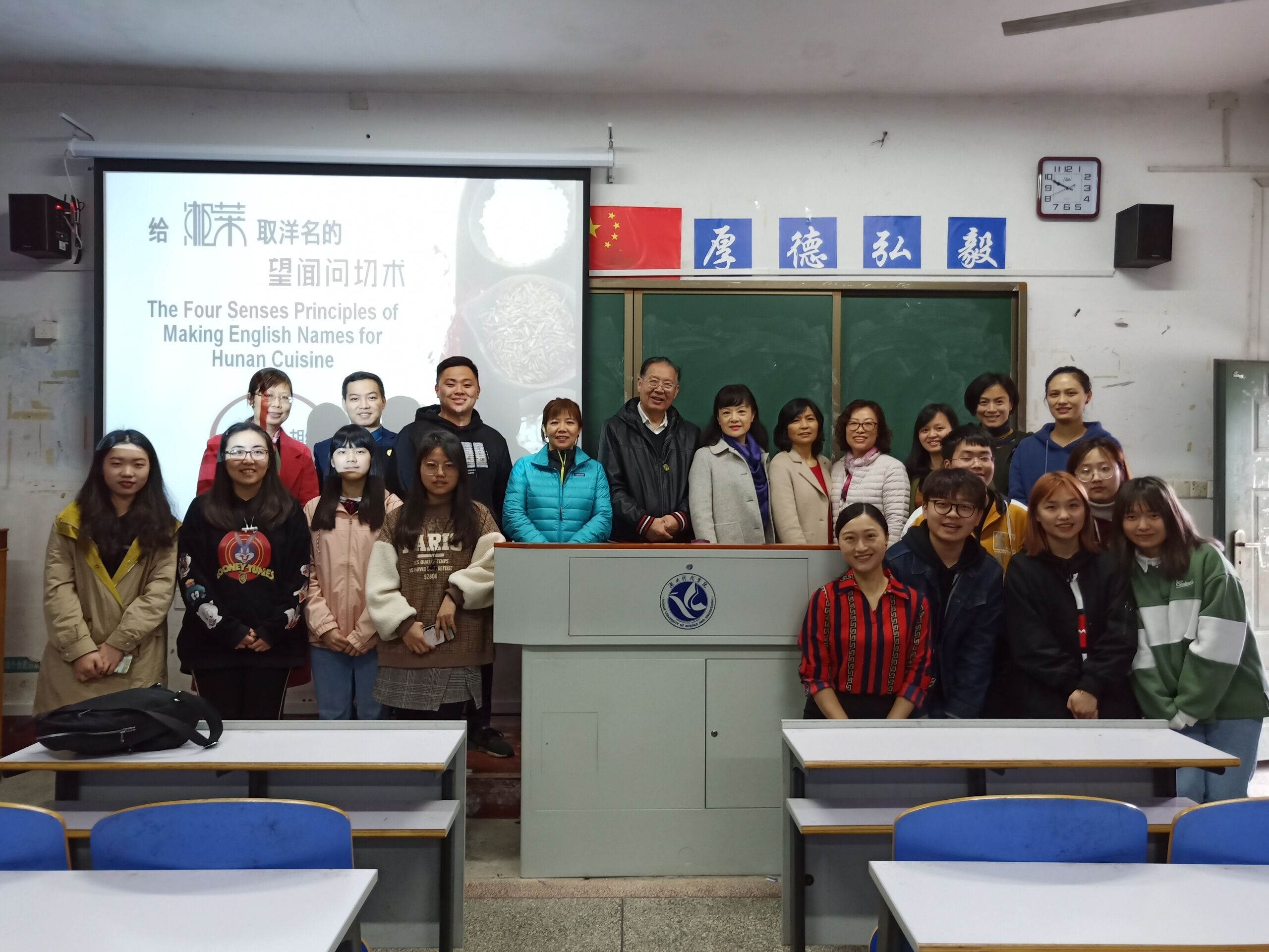 本网讯 2019年4月1日,我院教师胡维为美洲湖南永州同乡会代表们上了一堂精彩的“湘菜菜名翻译”公开课。