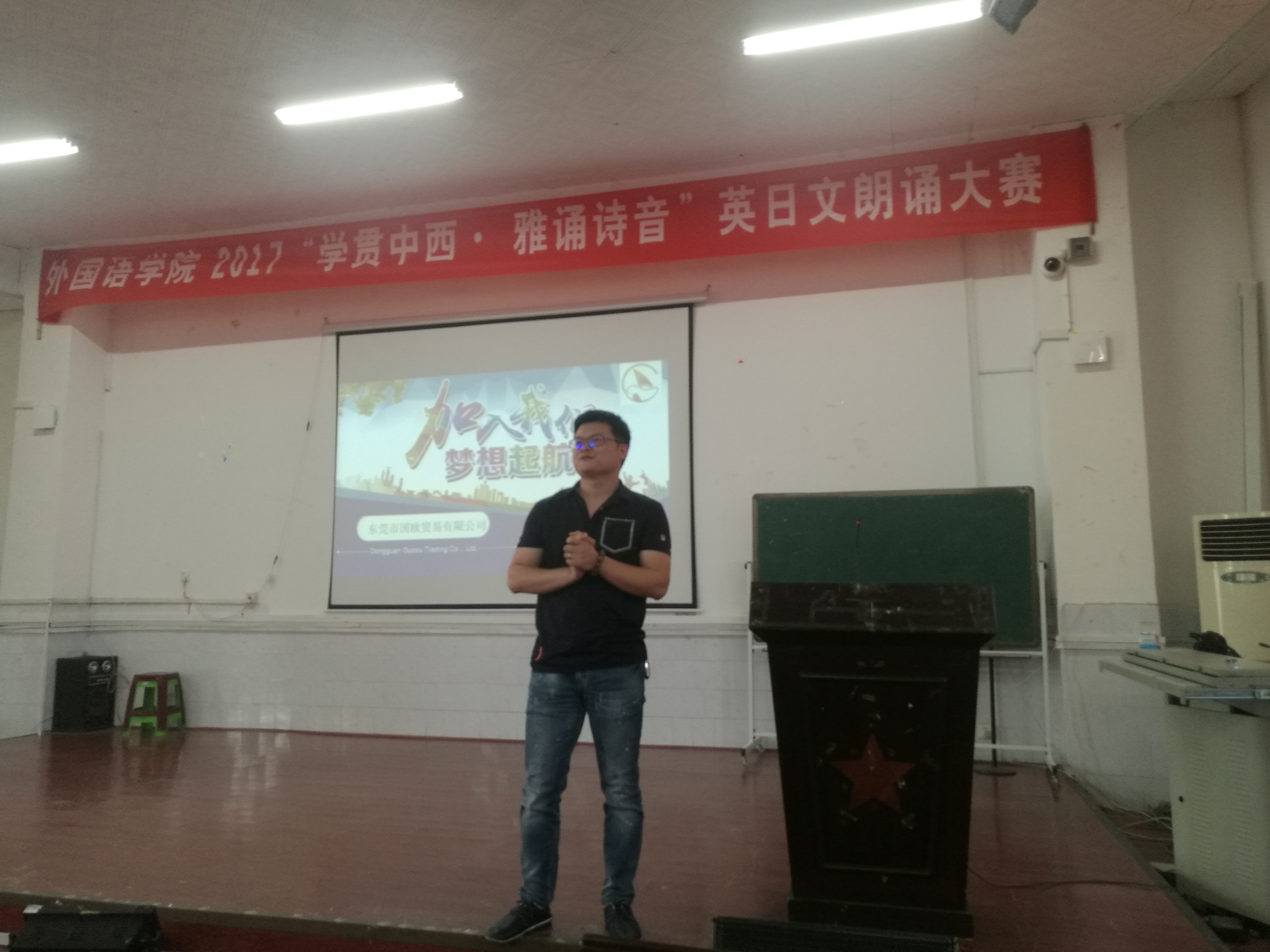 宣讲会中,张建国学长讲述了自己的创业历程,介绍国欧贸易有限公司的企业文化和发展潜力。他结合自身经历提出了其公司“笃诚守信,团结奋斗,拥抱变化,共存共赢”四个核心价值观,传递了正能量,展示了其公司企业文化建设的成功之处。
