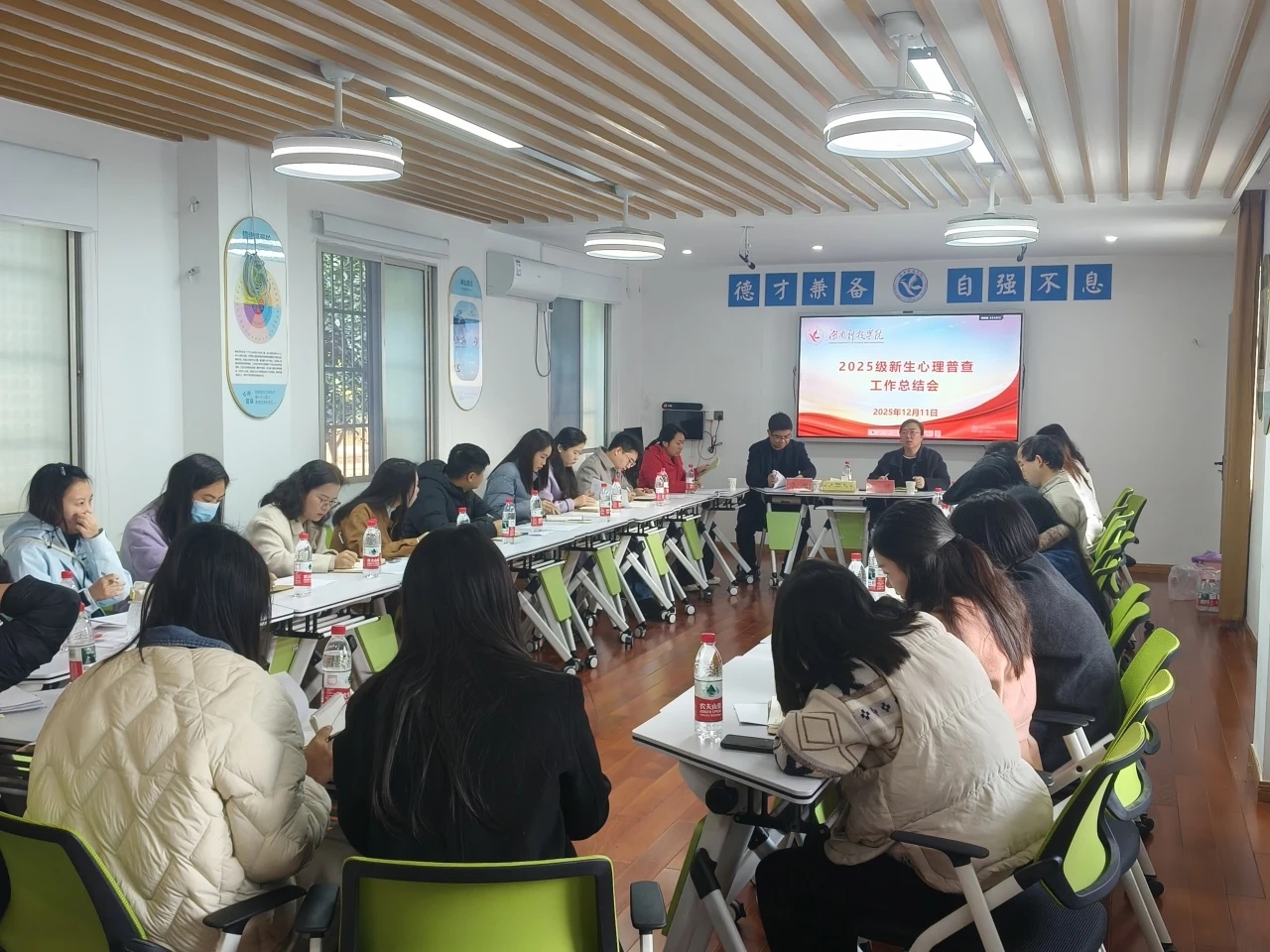 本网讯(通讯员:何媛媛 李海洪)12月11日上午,vwin德赢2025级新生心理普查工作总结会议在大学生心理健康教育中心智慧教室召开。学生工作部副部长王君、心理中心全体专职教师、各学院心理专干及全体新生辅导员参加会议。本次会议旨在系统总结本年度新生心理普查工作成效,部署后续心理健康教育重点任务,并对湖南省教育厅近期推出的辅导员心理健康教育能力认证工作进行解读与动员。