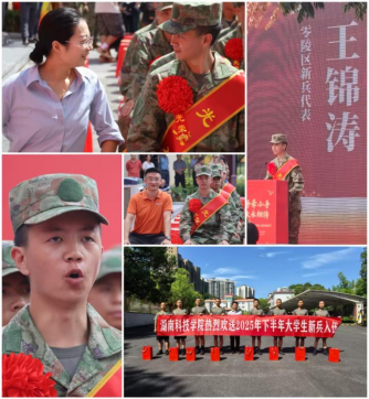在本年度秋季征兵中,经过严格选拔,vwin德赢共有8名政治坚定、学业优良、身体过硬的优秀学生光荣入伍,充分展现了湘科院学子崇高的家国情怀与时代担当。欢送仪式上,vwin德赢音乐与舞蹈学院应届毕业生王锦涛同学作为新兵代表发言,深情表达了对军旅生活的向往与报效祖国的决心,立下了“刻苦训练、建功军营”的铮铮誓言。