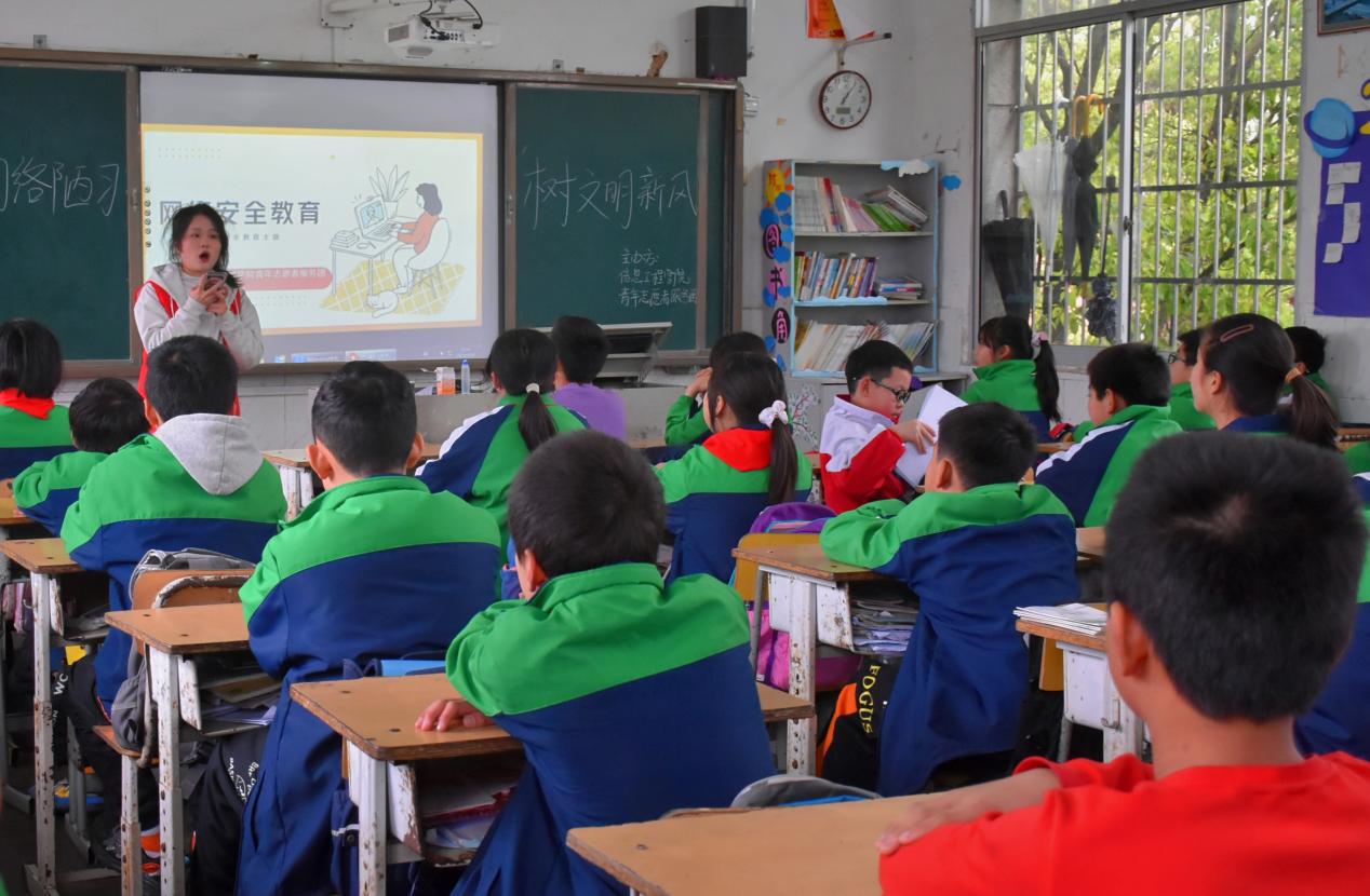 本网讯(通讯员 李玉娇 刘兵兵) 为了普及中小学生信息网络安全知识,营造良好的网络氛围,加快建设网络强国。我院青年志愿者服务团于3月24日走进杨梓塘小学举行“乡村信息技术课堂”活动,为六年级的小朋友上了一堂信息安全课。