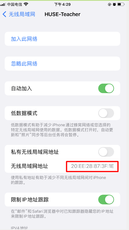 第五步:重新连接wifi,查看MAC地址是否为设备MAC。