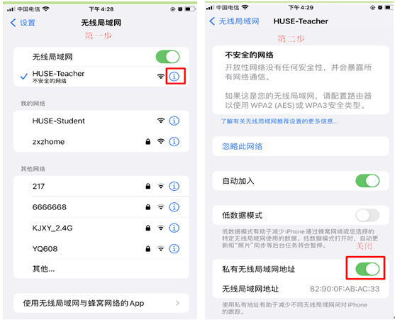vwin德赢校园网一直都有开通校园网无感认证服务,校园网只需认证一次,即可在校园任何位置上网,不需要再次认证。但由于个人设备如苹果手机、华为手机等自身系统安全性等因素,手机开启了随机MAC地址功能,使得用户在校园内需要频繁认证,非常的不便。针对该问题,分别以华为手机和苹果手机做示例(其他品牌手机操作大同小异):