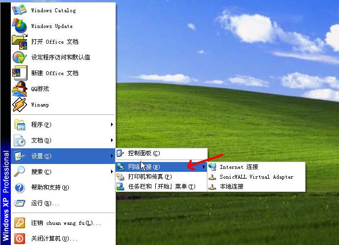 (2)找到【设置】→【控制面板】→【网络连接】点击鼠标左键2下打开