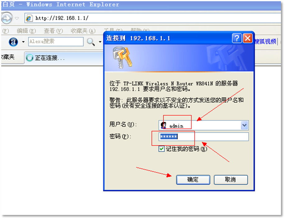 Internet Explorer 浏览器,如图在浏览器地址栏输入路由器默认局域网ip地址:192.168.1.1 ,回车: