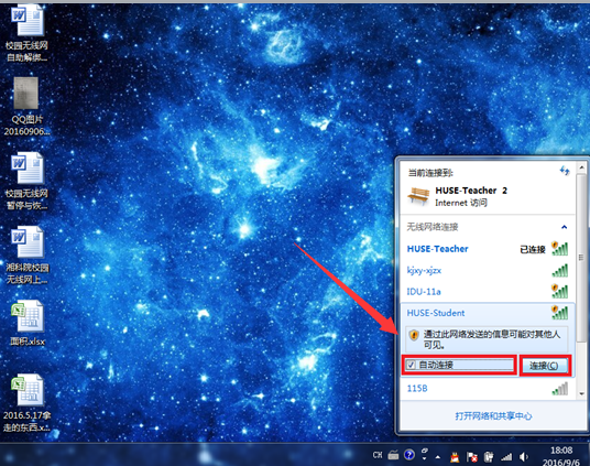 (2)点击“HUSE-Student”打勾“自动连接”,再点“连接”,如图2.2所示。
