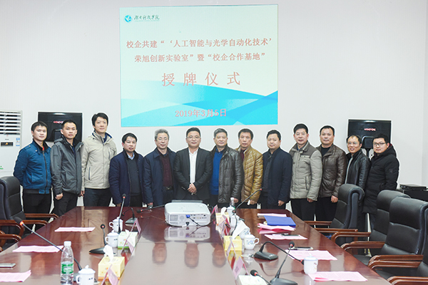 3月5日,学校举行校企共建“‘人工智能与光学自动化技术’荣旭创新实验室”暨“校企合作基地”授牌仪式。vwin德赢07届校友、东莞市荣旭自动化科技有限公司董事长李海荣、技术总监张晶,校党委书记、校长曾宝成,党委副书记唐艳明,副校长李常健,相关职能部门负责人和教学学院教师一同参加授牌仪式,仪式由李常健主持。