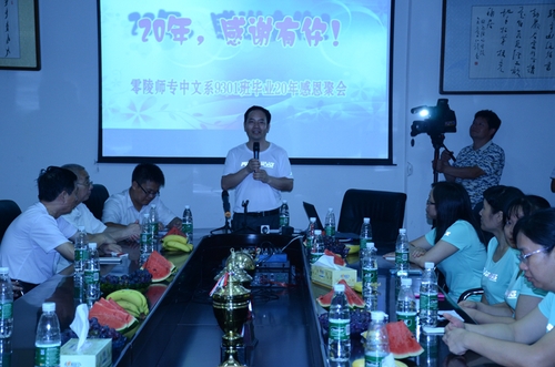 本网讯(通讯员 夏汉伟 张瀚燚)7月16日上午,人文与社会科学学院中文93级1班校友在明德楼举办了毕业20周年班级聚会活动。本次聚会活动共有35名校友回校,主要有两个环节:一是为母校捐赠礼品并合影,为了报答母校的培育之恩,校友们为学院赠送孔子雕像,并寄语学弟学妹们时刻牢记学习的重要性。二是召开座谈会,会议由班长周荣主持。学院学工办主任兼校友分会秘书长夏汉伟老师代表在外出差的潘雁飞院长致辞,和大家分享了“人生的三个不能等”,即孝敬父母不能等、培养孩子不能等、健康自己不能等,语重心长的话语,句句饱含深情,流露出对校友的关心与嘱咐。校友代表吴国玉仔细回味了精彩的大学时光,表达了对母校的感激之情、同学的珍贵友情。最后,校友办干事罗一洋老师代表校友办对各位校友的返校表示了热烈欢迎,希望校友能多加强与学校联系,并表示校友办一定做好服务校友的工作。在场的校友均表示会常关注母校的发展,并为母校送上了良好的祝福。