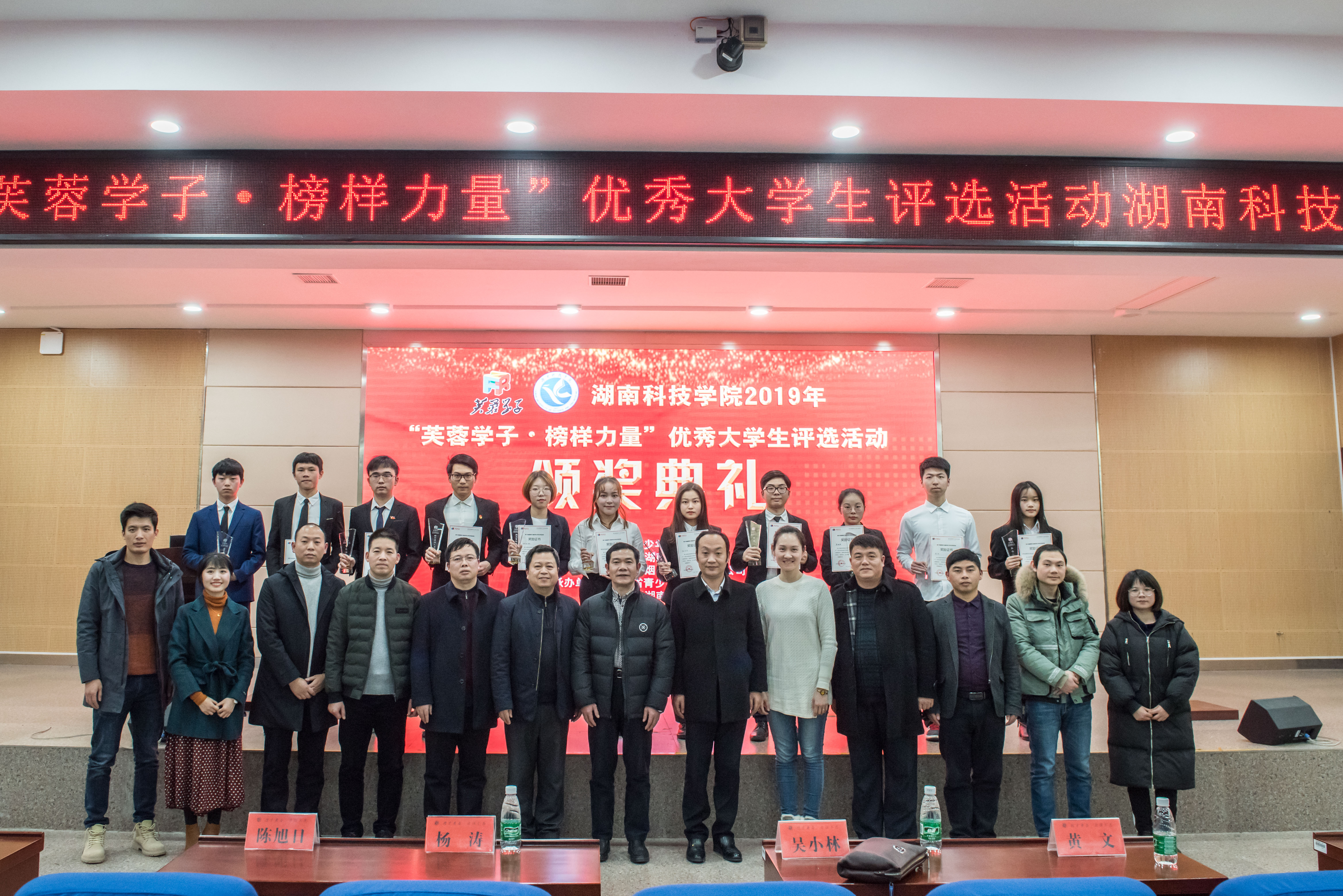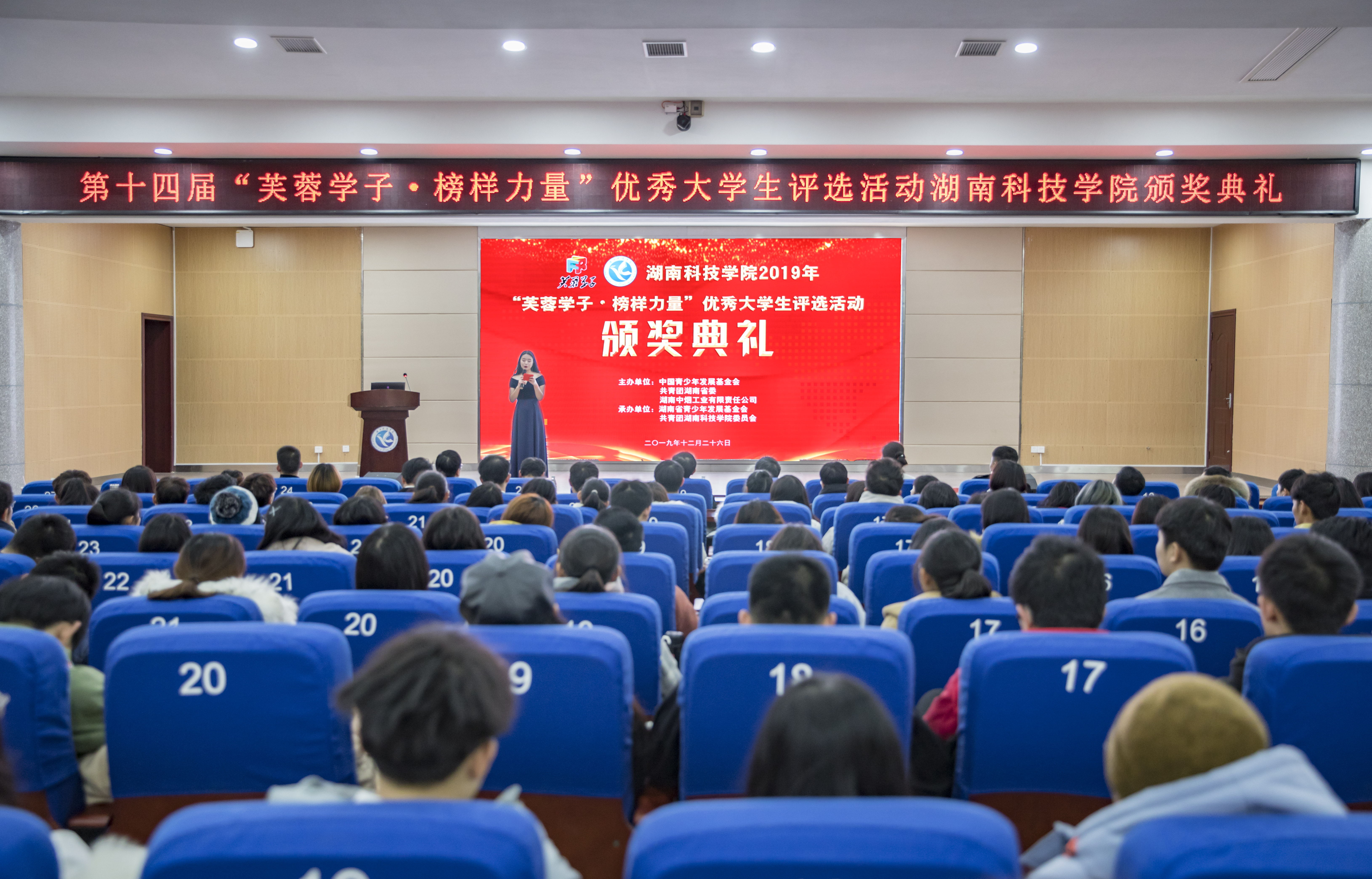 12月26日晚,第十四届“芙蓉学子·榜样力量”vwin德赢ac米兰官方网优秀大学生评选活动颁奖典礼在潇湘大讲堂举行。副校长吴小林,宣传统战部、学工部、教务处、科技处、团委、就业创业指导中心等职能部门负责人及600余名学生代表参加。