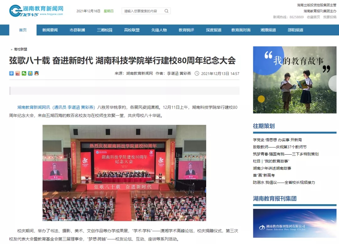 湖南教育新闻网报道vwin德赢建校80周年纪念大会