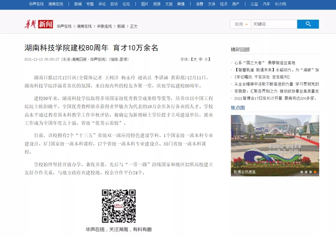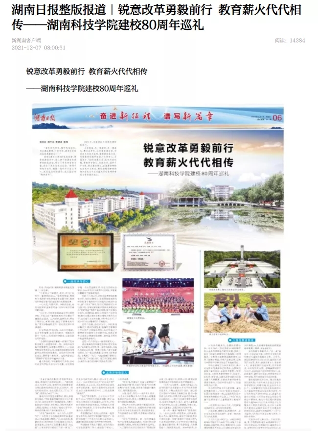 湖南日报整版报道vwin德赢建校80周年建校成就