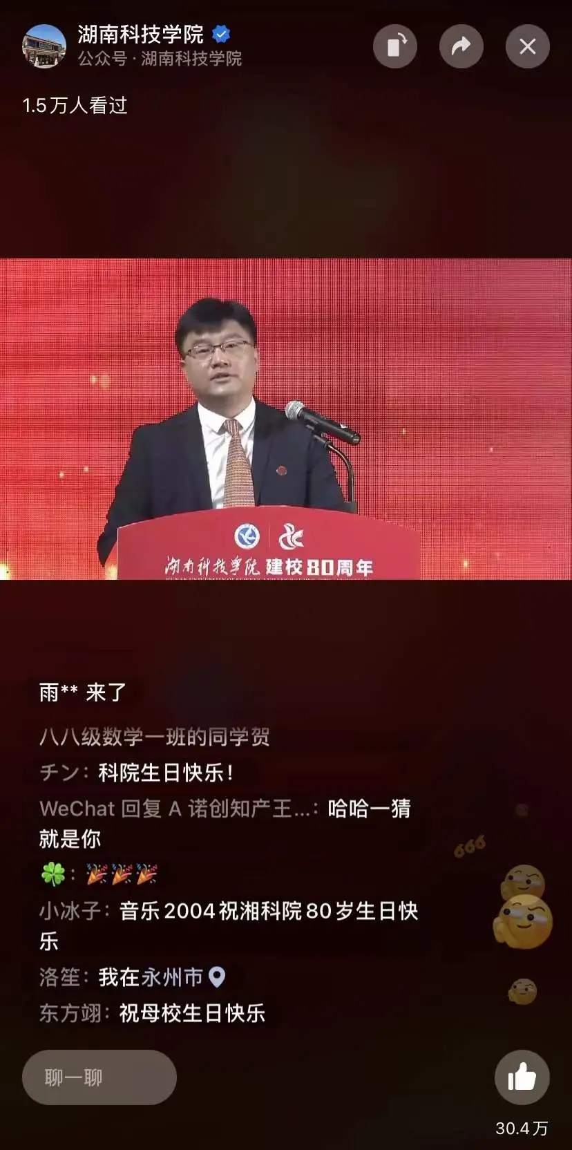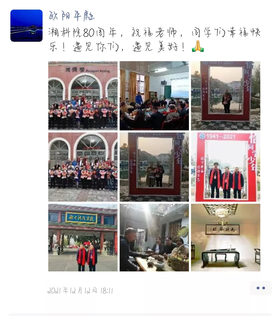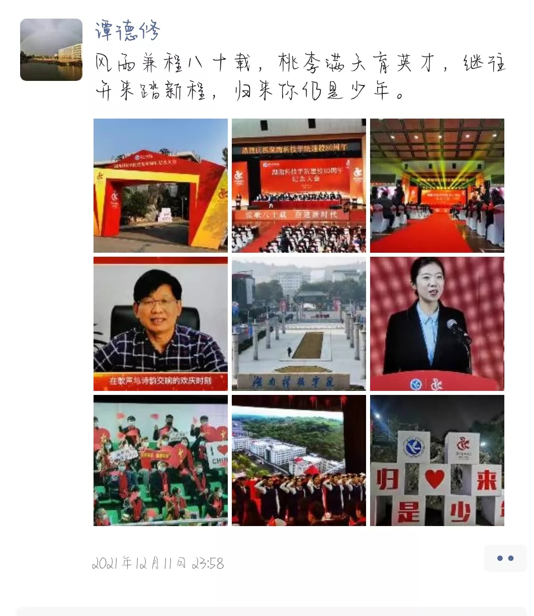 喜迎湘科院八十华诞,校园内充满了欢乐的气氛,所有科院人都为之振奋。从全国各地赶回来的校友,在校园各处打卡留念,我想,科院的美好与温暖是不止于这在校四年的。我很荣幸是这个有爱大家庭的一份子。祝福科院生日快乐,祝愿科院的明天更加灿烂辉煌!