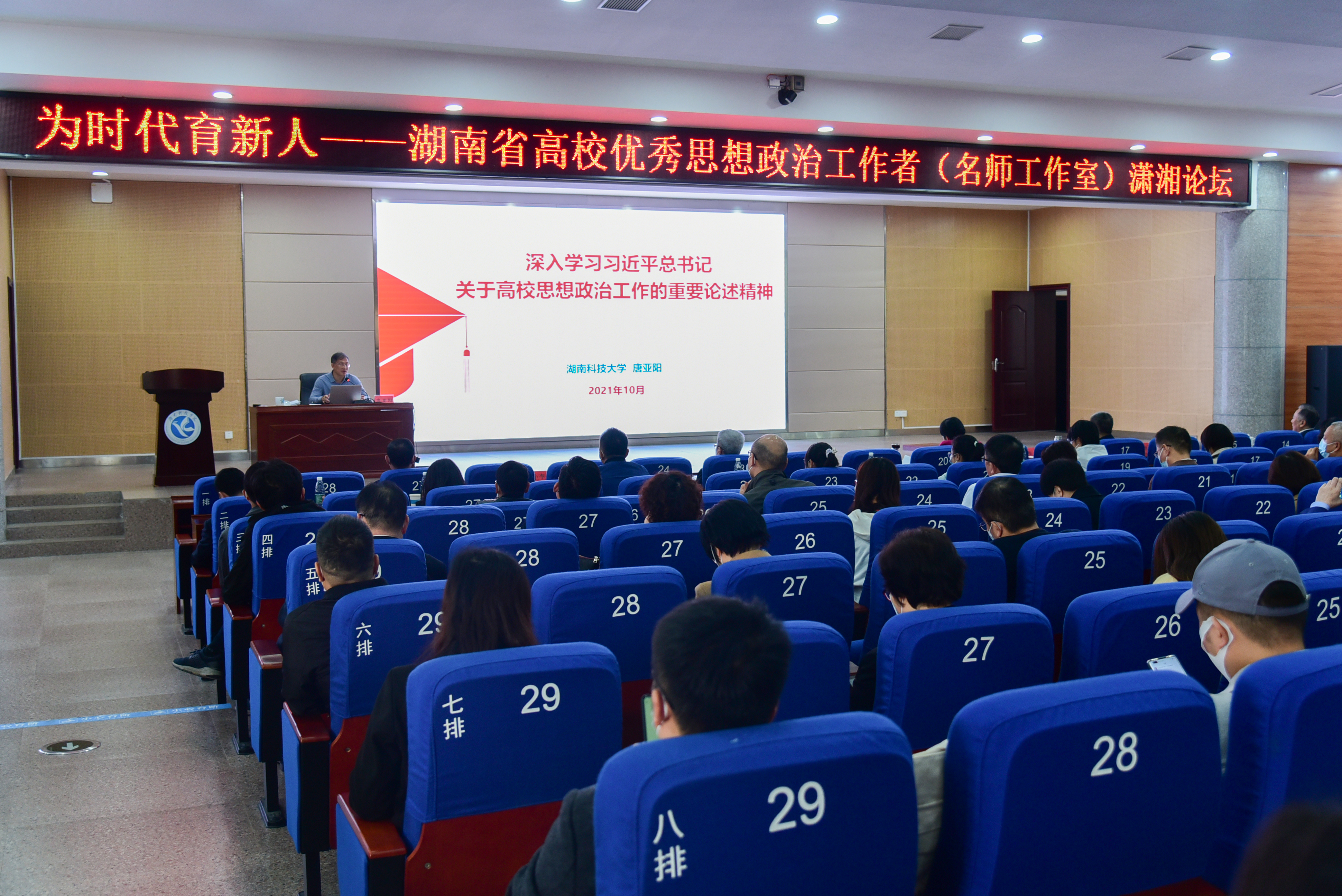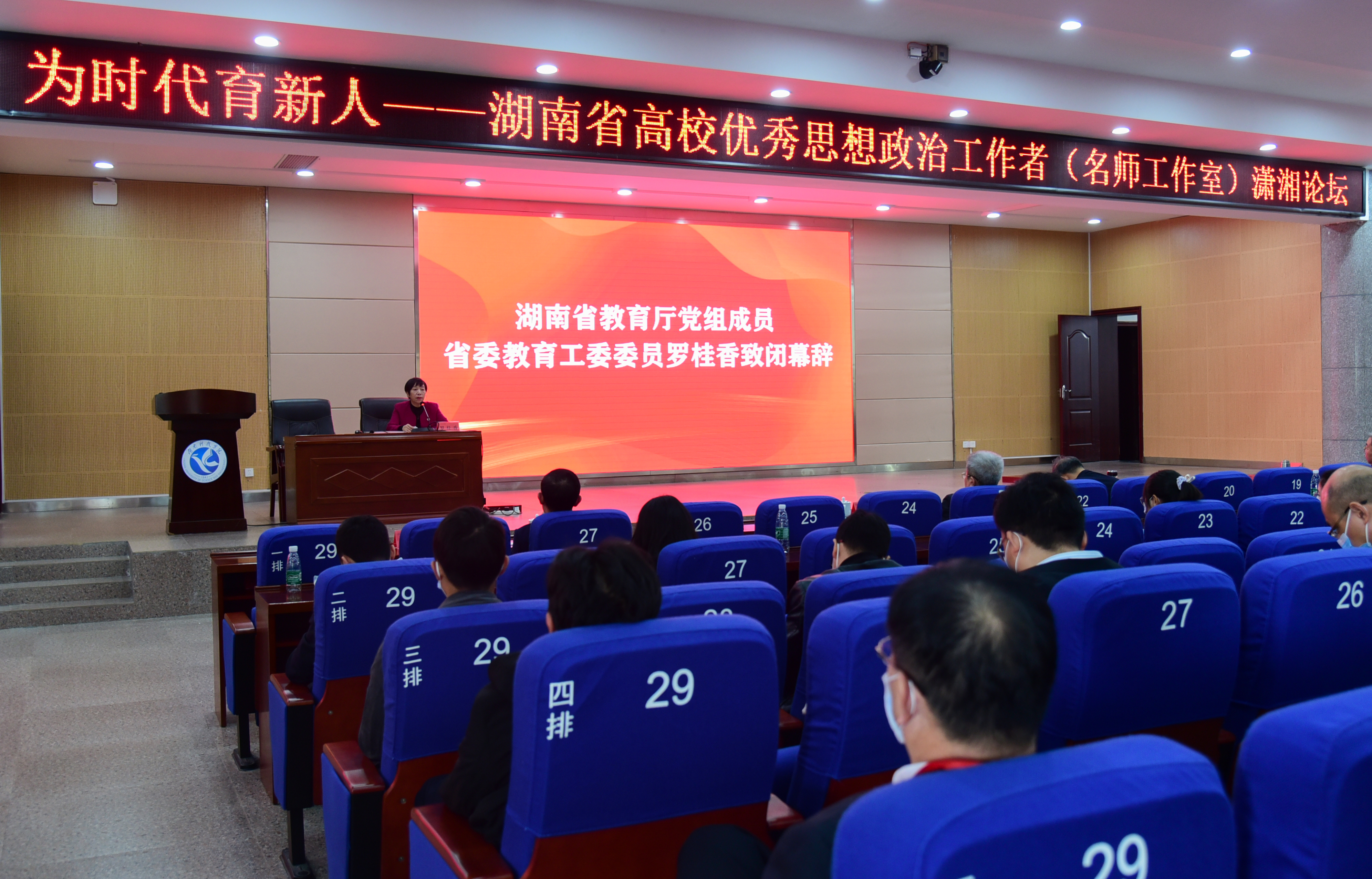本次论坛活动由中共湖南省委组织部、中共湖南省委宣传部、中共湖南省委教育工委(湖南省教育厅)主办,vwin德赢ac米兰官方网承办,湖南省高校思想政治教育研究会协办,旨在落实《中国共产党普通高等学校基层组织工作条例》《关于新时代加强和改进思想政治工作的意见》,系统总结湖南自2019年1月入选全国“三全育人”综合改革试点区以来高校思想政治工作队伍人才建设的理论和实践创新成果,创新实施高校思想政治工作质量提升工程,纵深推进湖南省高校“三全育人”综合改革。首场论坛为高校优秀思想政治工作者名师工作室专场,教育部思想政治工作司副司长李景升寄语论坛,湖南省委宣传部副部长胡代松、省委教育工委委员,省教育厅党组成员罗桂香等参加开幕式并讲话。北京师范大学思想政治工作研究院院长冯刚、湖南科技大学党委书记唐亚阳作主题报告。30余名高校优秀思想政治工作者名师工作室项目主持人、首届高校最美思政课教师和辅导员代表作交流发言。专家学者们结合自身思政工作实践,围绕更好落实立德树人根本任务,从扎实推进名师工作室建设、加强思政课程建设、创新思想政治教育工作方法等开展全方位、多角度探讨,着力推进教学体系向育人体系转变,着力增强思政课吸引力和亲和力,着力提升思想政治工作针对性与实效性,为培育时代新人提供新动能。