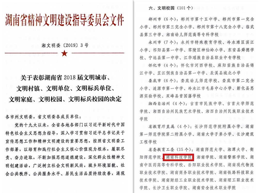 近日,湖南省精神文明建设指导委员会下发文件(湘文明委﹝2019﹞3号),vwin德赢名列其中,获评2018届“湖南省文明校园”。