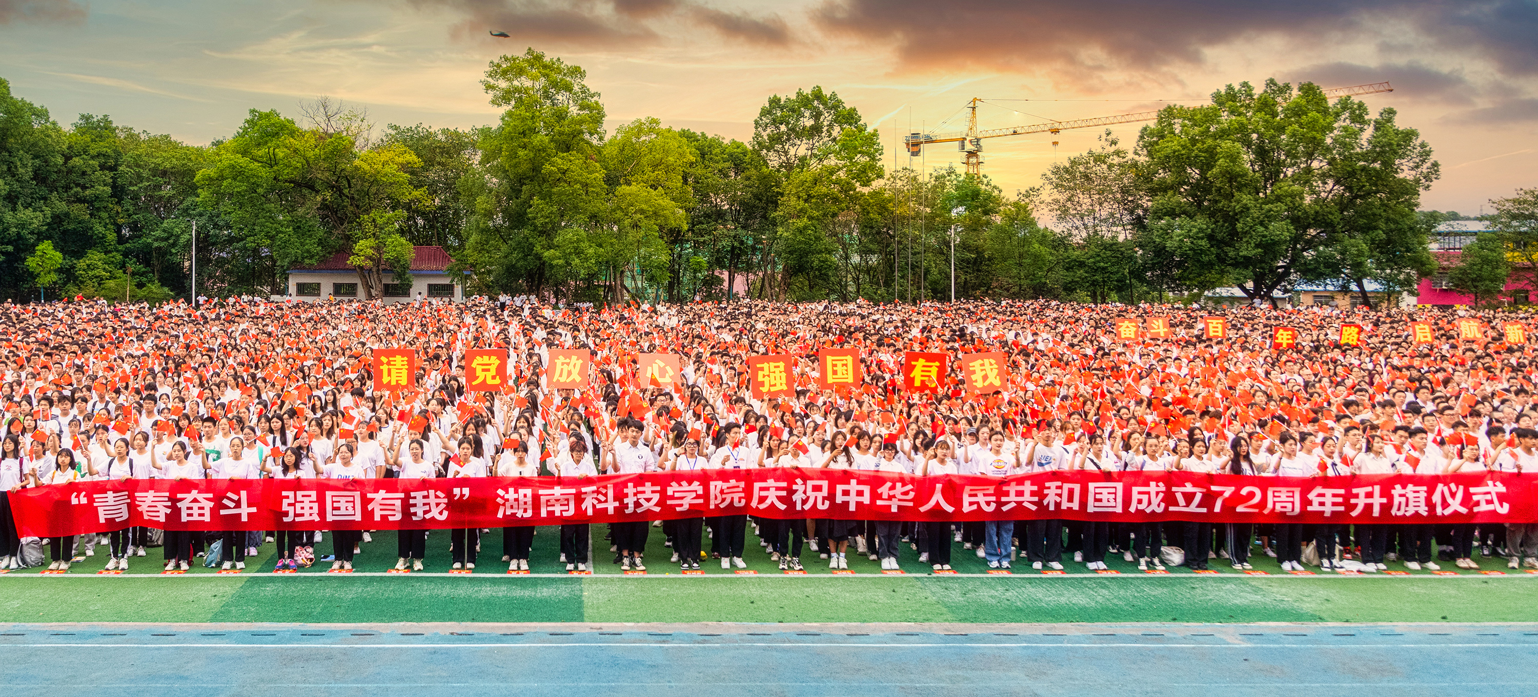本网讯(记者 黄彩燕)9月30日清晨,学校举行万人升国旗仪式,全体师生齐唱《歌唱祖国》。党委书记曾宝成,党委副书记、校长李钢,校领导宋宏福、李常健、吴小林、何福林、郑银芳、何海,党委委员组织部部长杨涛出席仪式。升旗仪式由党委副书记、校长李钢主持。