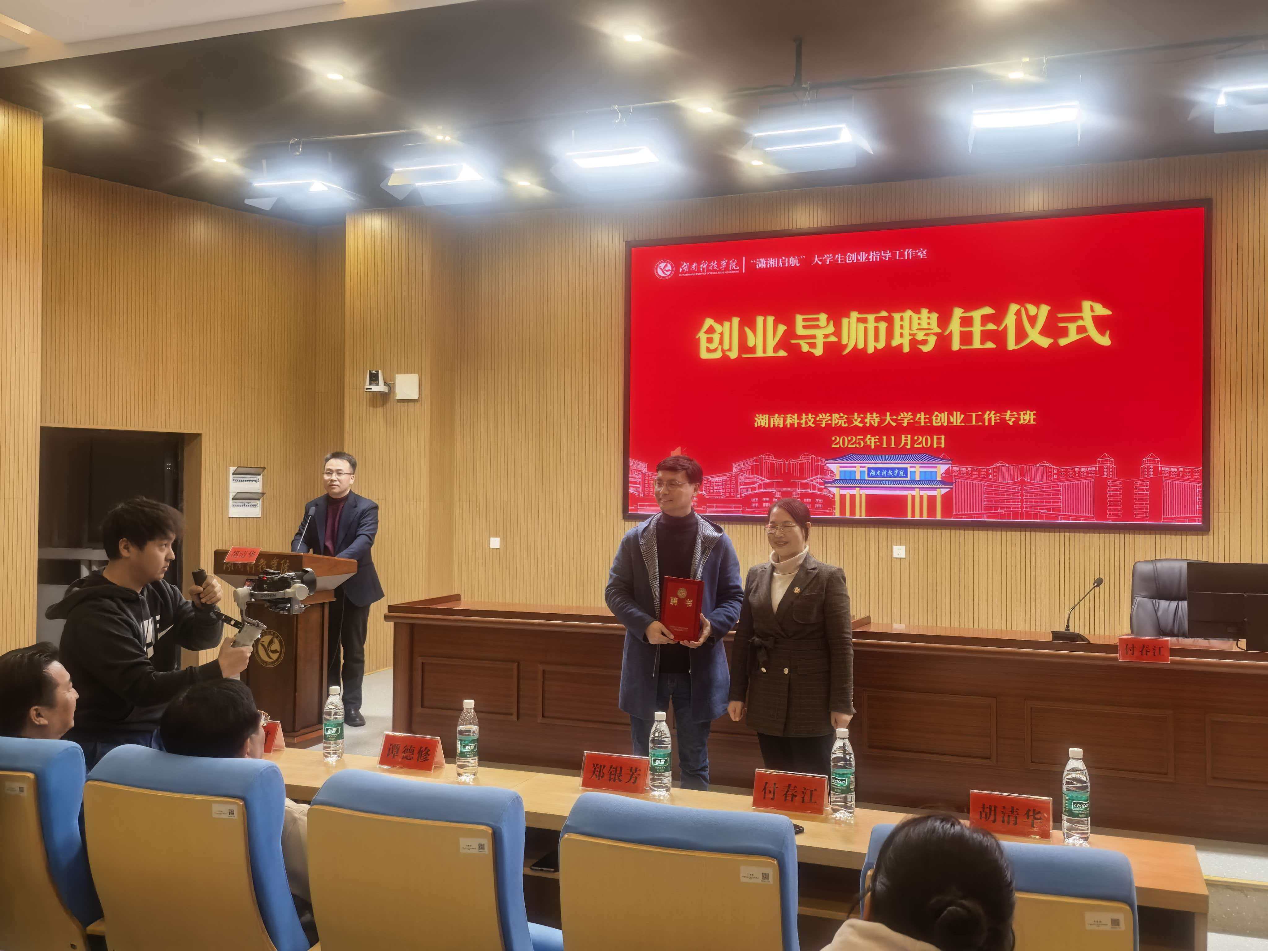 活动伊始,副校长郑银芳为付春江颁发创业导师聘书。