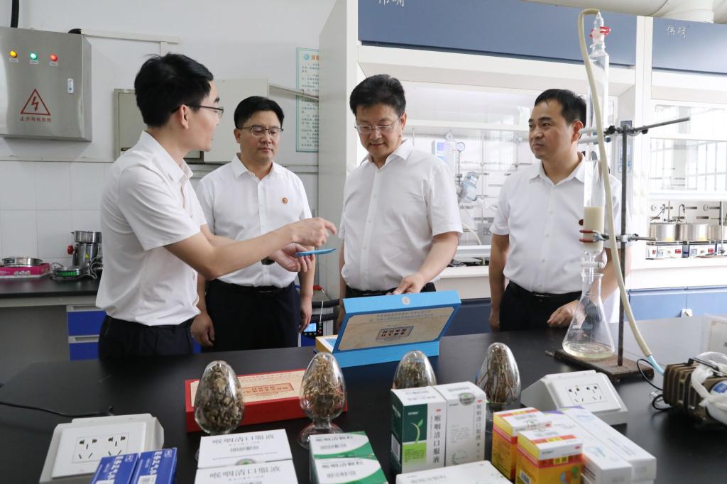 陈爱林一行来到vwin德赢化学与生物工程学院,详细了解市十大科技创新项目——“中药大品种培育研究与应用”项目在产品研发、技术创新、转化推广等方面的进展情况。随后召开座谈交流会。陈爱林表示,科技创新是引领高质量发展的强劲动力。要深入开展“政校企”一体合作,支持具有核心竞争力的企业与vwin德赢ac米兰官方网组建创新联合体,实现共建共享、合作共赢。要坚持企业创新主体地位,聚焦市场需求,引导企业加大研发投入,加强技术攻关,推动“科创链与产业链”融合发展。要精准精细服务企业发展,帮助企业解决实际困难,特别是要帮助专精特新企业提高创新能力,更好发挥引领作用。要大力推进十大科技创新项目建设,以科技创新引领产业创新,不断培育新动能塑造新优势,力争在打造具有核心竞争力的科技创新高地上发出更多永州声音。