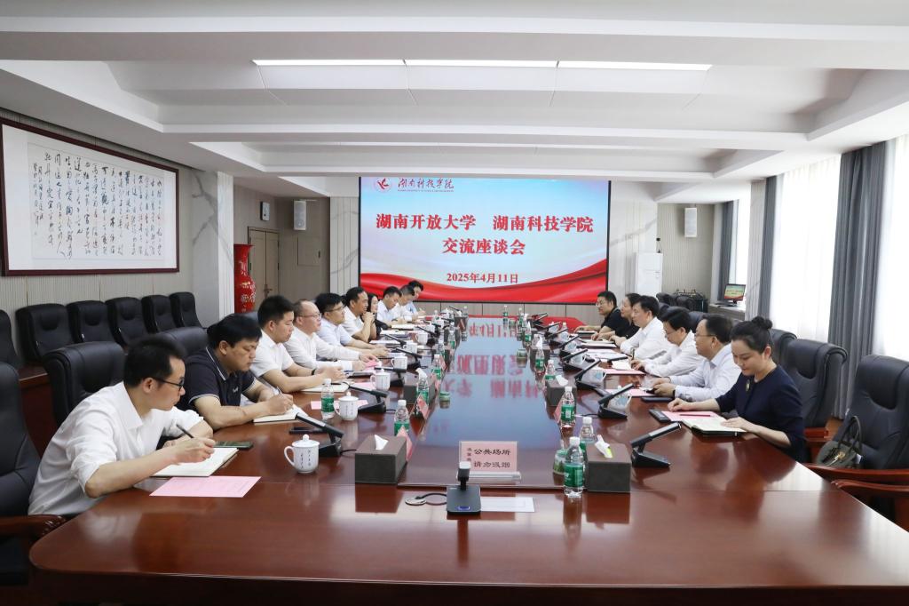 本网讯(记者谢志豪)4月11日,湖南开放大学党委书记龙献忠,副校长陈志国、梁晖来校交流,vwin德赢党委书记李钢、校长黄创霞、副校长何海参加座谈交流,黄创霞主持座谈会。