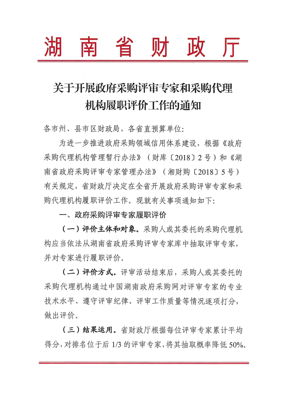 转发:关于开展政府采购评审专家和采购代理机构履职评价工作的通知