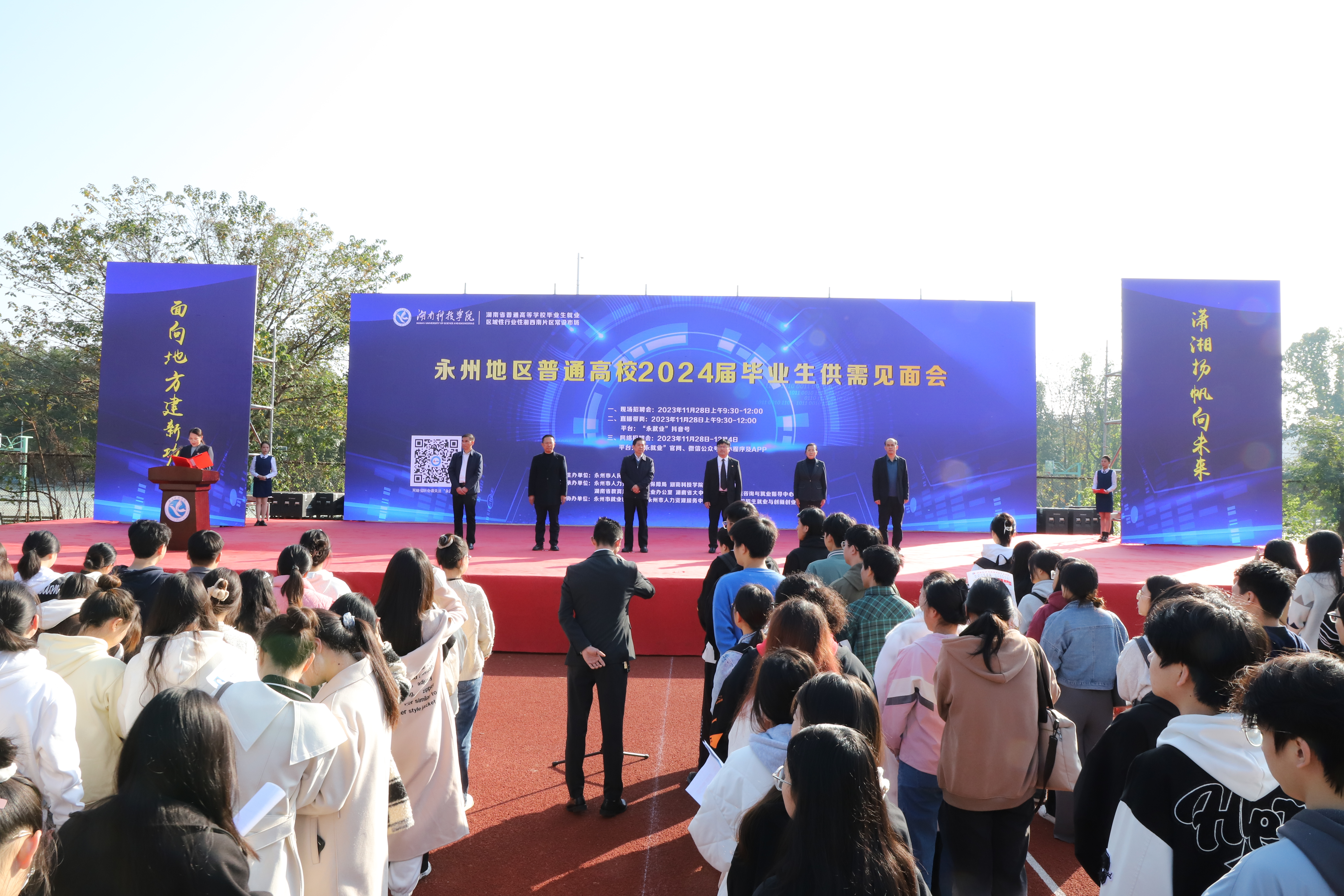 本网讯(通讯员 龙泉)11月28日上午,由永州市人力资源和社会保障局、永州市教育局与vwin德赢共同举办的永州地区普通高校2024届毕业生供需见面会在vwin德赢小田径场举行。见面会共吸引了来自省内外的181家优质用人单位参会,为毕业生提供就业岗位6400余个。