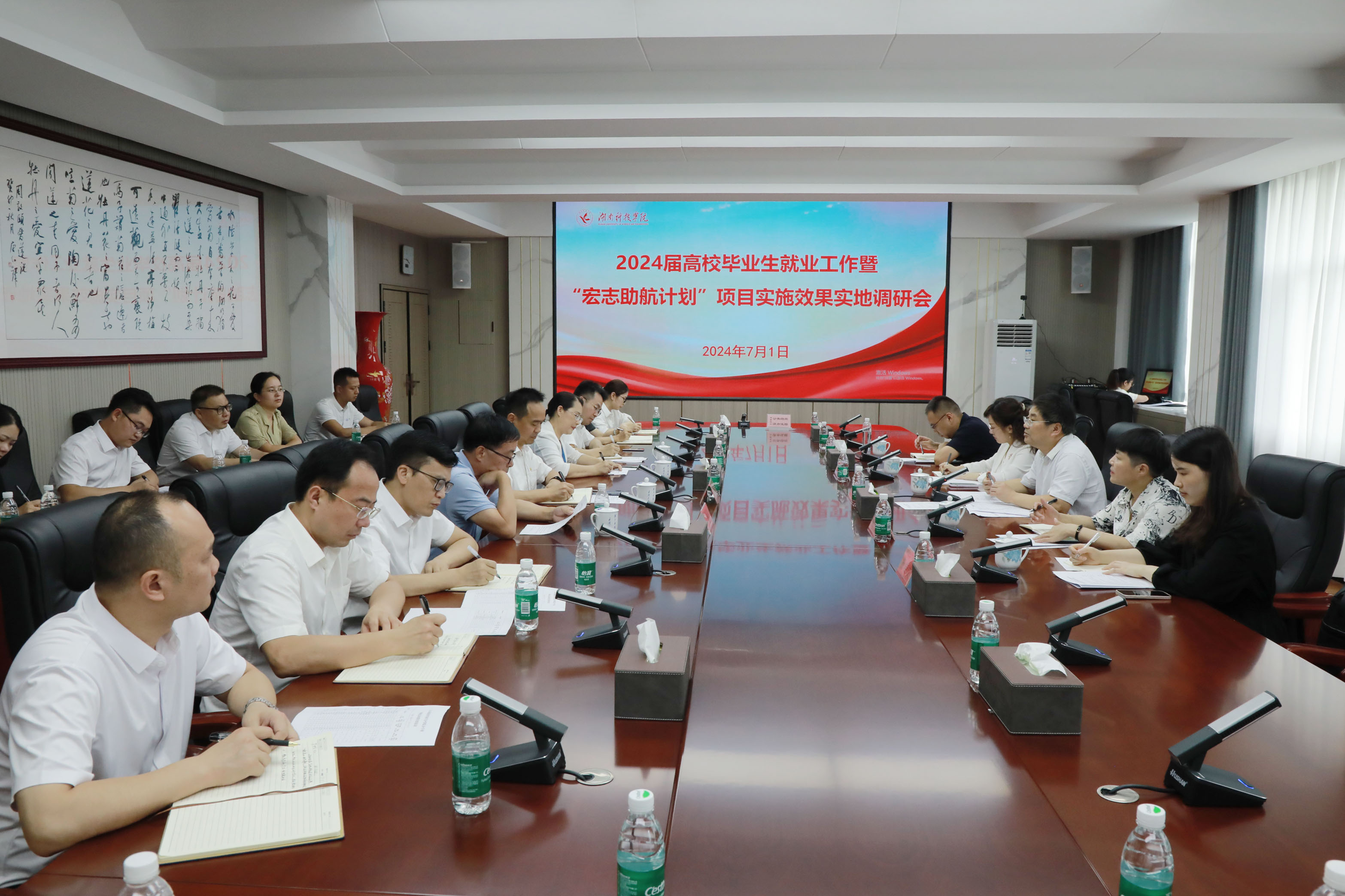 本网讯(通讯员 张亚南)7月1日,湖南省教育厅二级巡视员柴世钦一行莅临vwin德赢,就2024届高校毕业生就业工作暨“宏志助航计划”项目实施效果进行实地调研。校长黄创霞、副校长郑银芳、招生就业与创新创业指导处处长胡清华、各教学学院党总支书记、毕业班辅导员及相关工作人员参加调研会。会议由黄创霞主持。