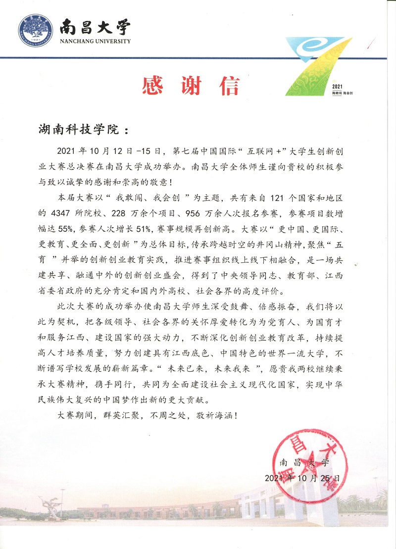 南昌大学感谢信